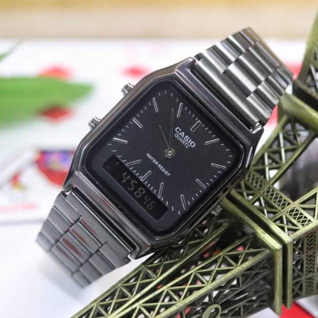 JAM TANGAN UNISEX CASIO AQ-230 SERIES DUAL TIME ANALOG AND DIGITAL FULL SET