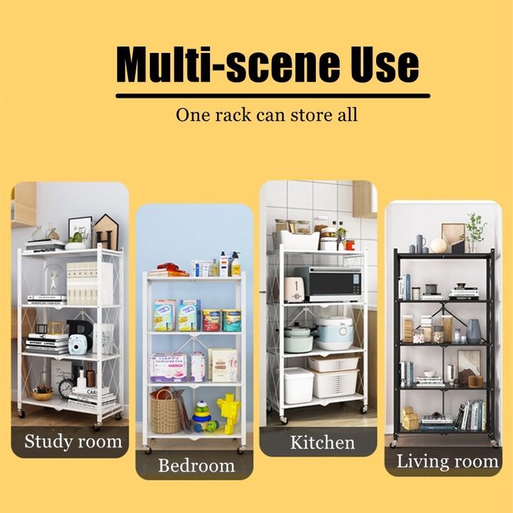 Rak Dapur Lipat Multi-fungsi Rak Roda Rak Lipat 5 Susun Rak Penyimpanan Serbaguna