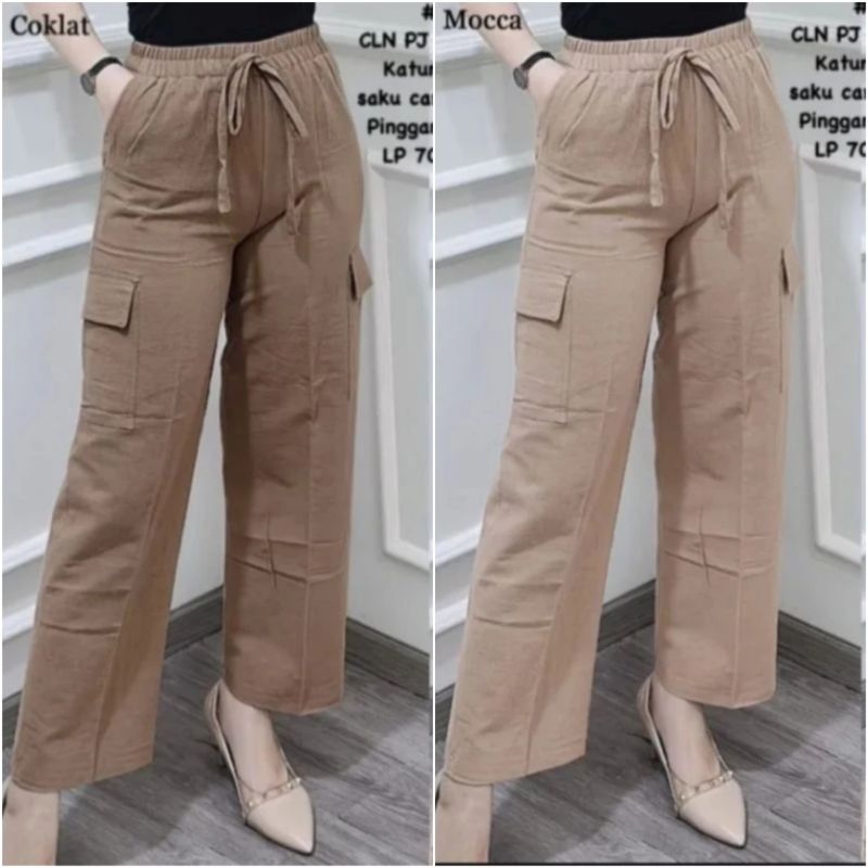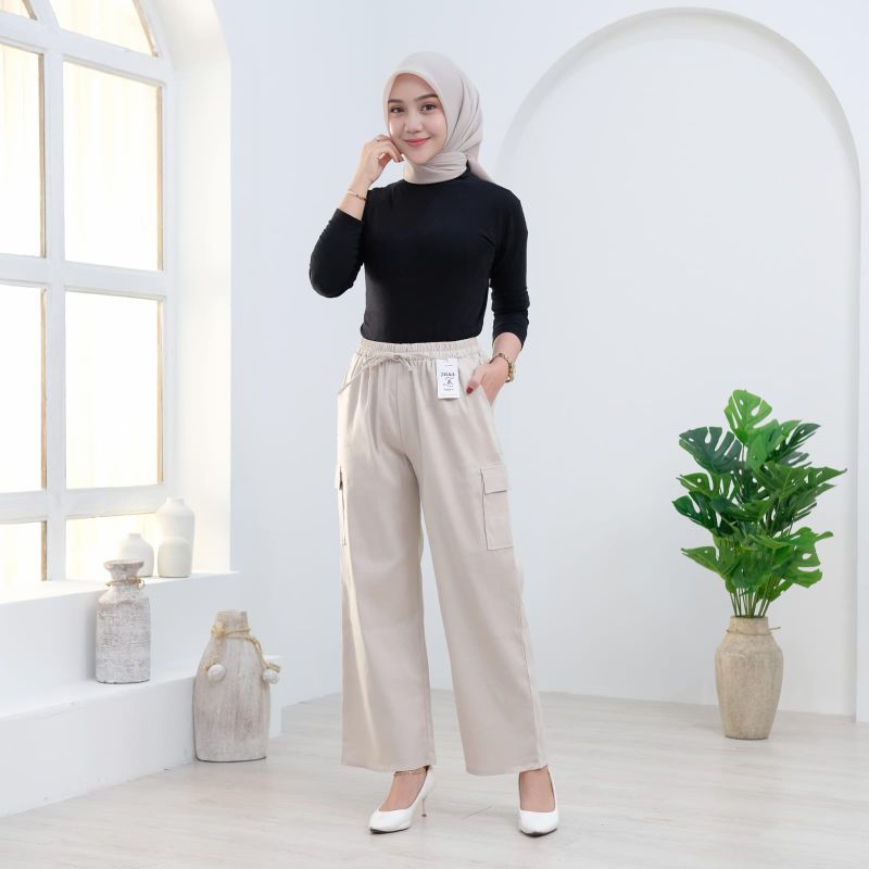 ZILKA - CELANA KULOT CARGO WANITA LINEN CRINKLE PREMIUM KOREAN STYLE