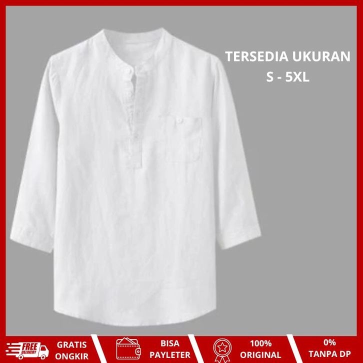 Kemeja Koko Pria Dewasa Lengan Panjang Kurta Original Bahan Katun Premium Size S-5XL