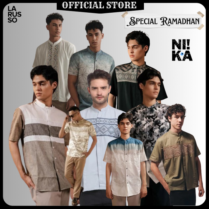 LARUSSO Khair Collection - Kemeja Koko Bordir Pria Bertekstur Lengan Pendek Baju Koko Lebaran Terlaris Murah