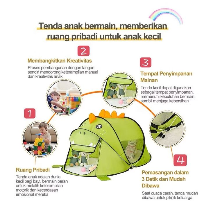 TENDA ANAK ANAK / TENDA OTOMATIS / TENDA ANAK MODEL HEWAN / BONUS TAS TENDA CAMPING ANAK LIPAT / TENDA ANAK GOOD QUALITY