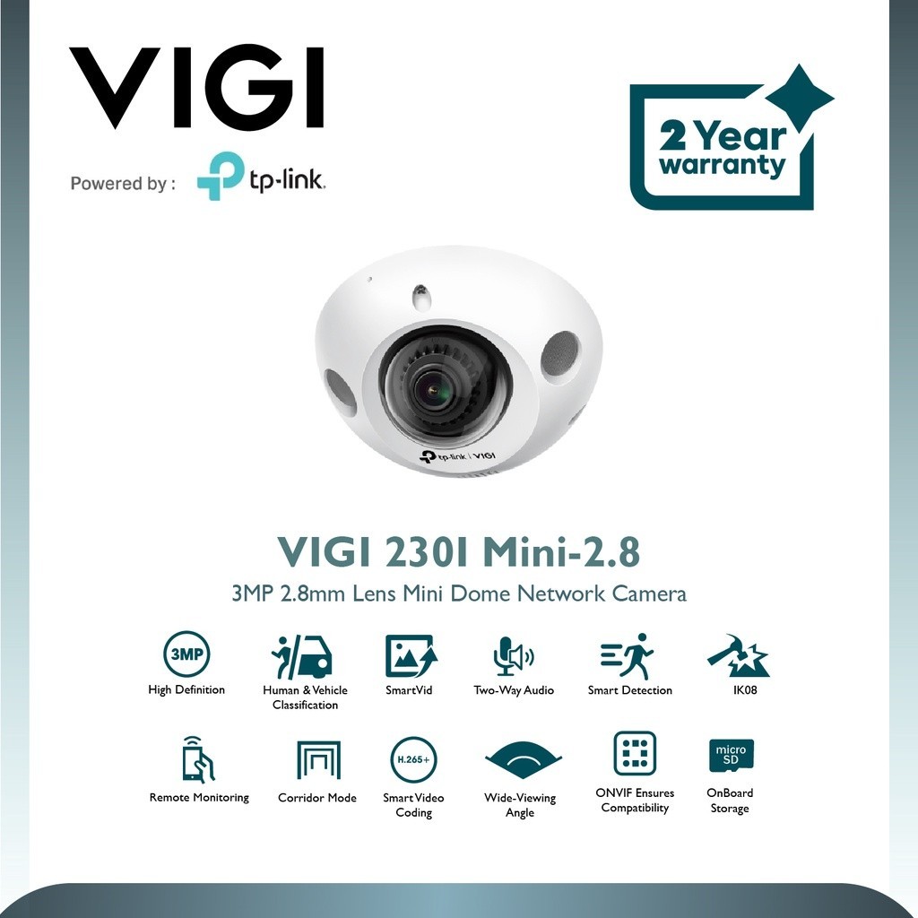Network Camera CCTV 3MP TP-Link VIGI C230I IR Mini Dome H.265 - Lens 2.8mm