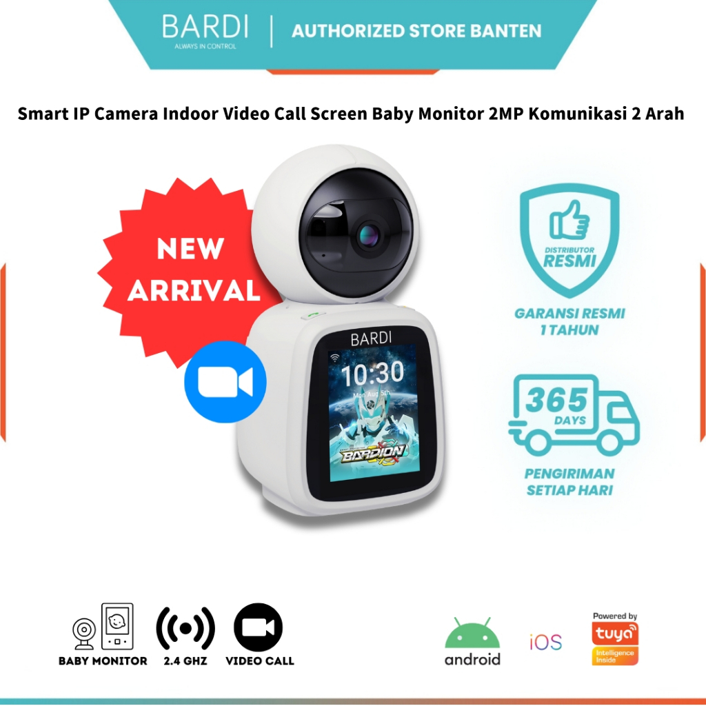 Smart IP Camera PTZ Indoor with Video Call Screen Baby Monitor 2MP Komunikasi 2 Arah WiFi IoT BARDI