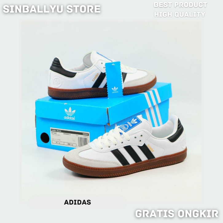 SEPATU SNEAKERS PRIA & WANITA ADIDAS SAMBA VEGAN CLOUD WHITE CORE BLACK GUM FW2427 | SINBALLYU STORE