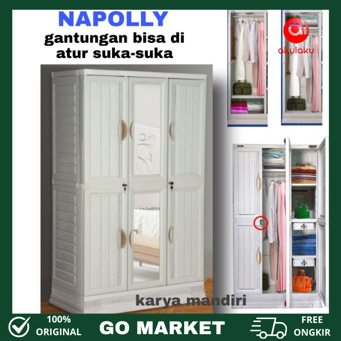 Lemari pakaian plastik 3 pintu,Lemari gantung CABRO lemari plastik jumbo/lemari plastik berkualitas 2025 BEST SELLER