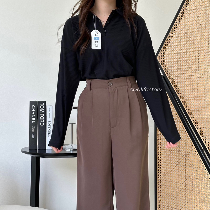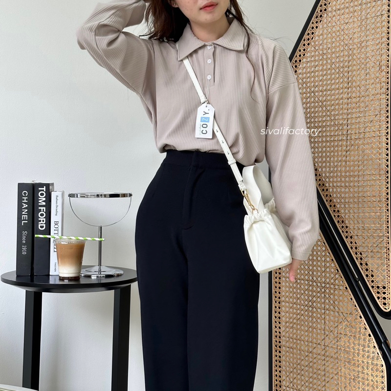 SIVALI Rumi Top 7733 || Polo Shirt Atasan Wanita Longsleeve Shirt Lengan Panjang