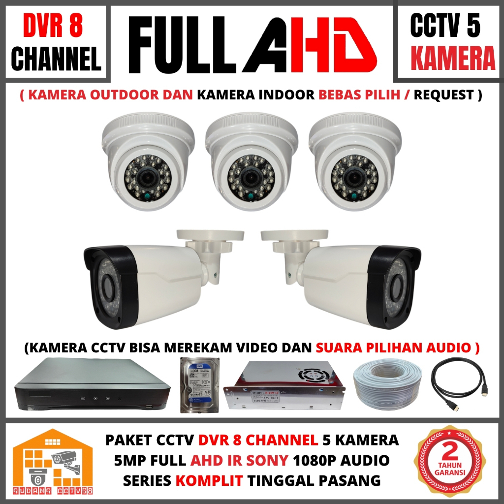 PAKET CCTV FULL AHD 8 CHANNEL 5 KAMERA 5MP IR SONY 1080P CAMERA CCTV KOMPLIT TINGGAL PASANG