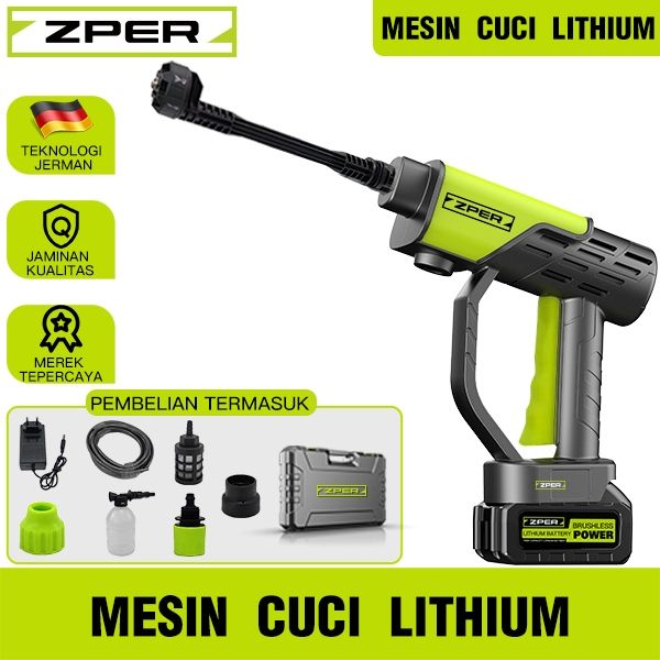 AMMAR SHOP ZPER Alat Cuci Mobil Air Tekanan Tinggi Alat Portable Nirkabel Untuk Nyuci Mesin Cuci Lithium ZP005