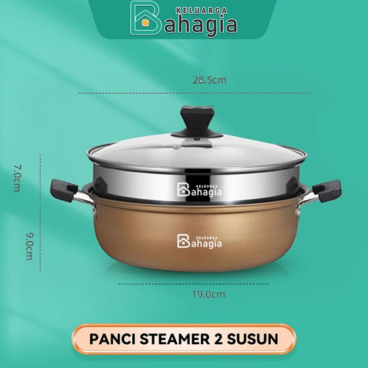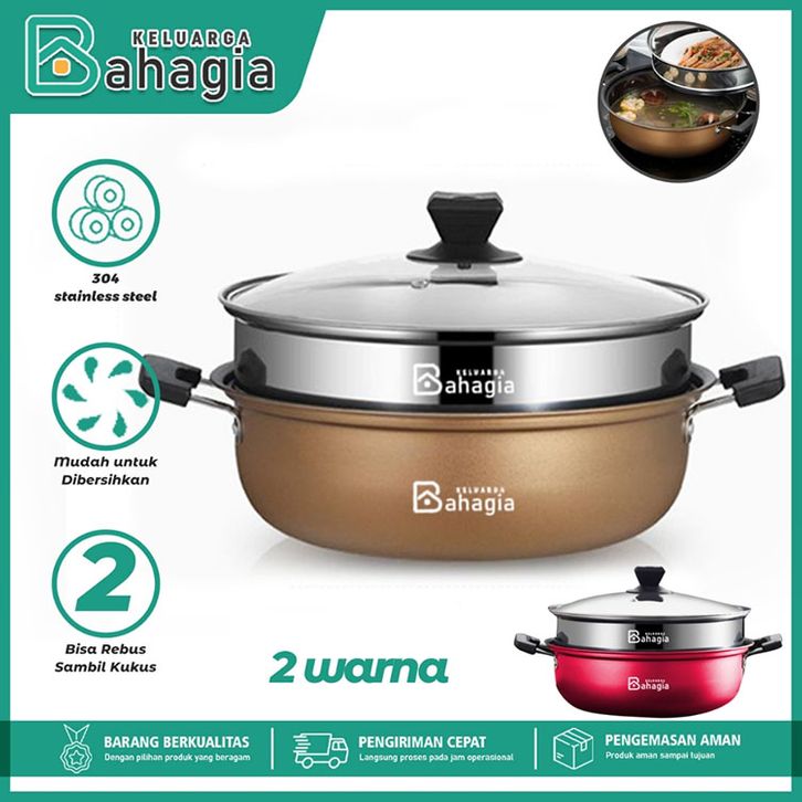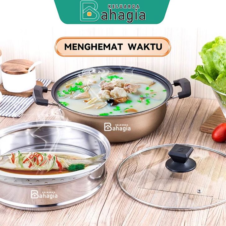 Panci Steamer 2 Tingkat Panci Pengukus Stainless Steel 28cm Panci Rebus High Quality Anti Lengket