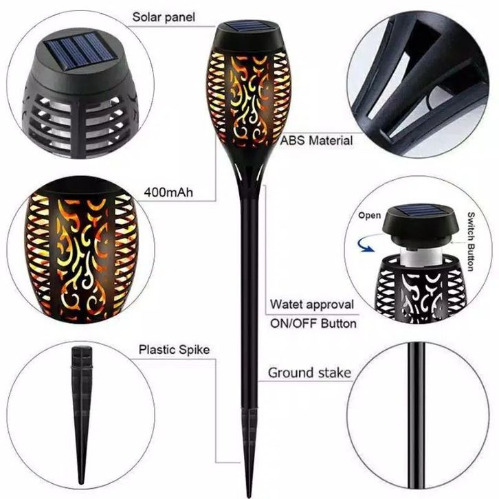 lampu taman tancap obor api tenaga matahari / Lampu Solar Obor tenaga surya TANPA KABEL / Lampu Taman Model Obor Tenaga