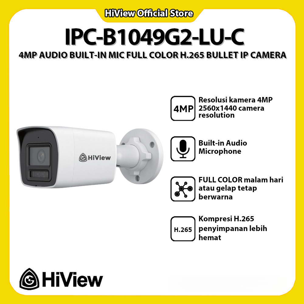 HiView IPC-B1049G2-LU-C CCTV 4MP Audio Built in Mic Full Color H.265 Bullet IP Camera