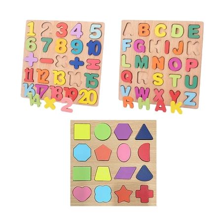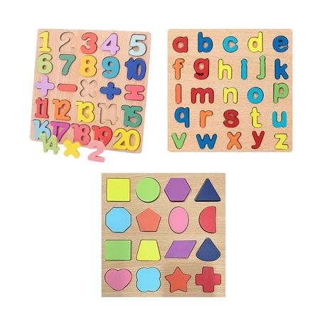 Chunky Puzzle 3D Geometry Huruf Angka Bentuk/Mainan Edukasi Anak laki laki perempuan 1-3tahun bestseller terlaris