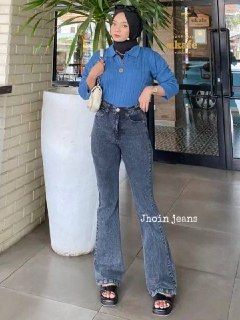 Highwaist Cutbray Jeans Wanita - Celana Cutbray Strecht Kekinian - Streetch Premium Quality