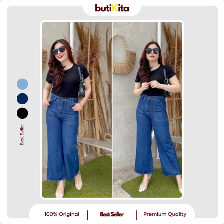 CELANA JEANS WANITA HIGH WAIST JUMBO KEKINIAN TERBARU CELANA LEVIS KULOT ALICE KANTONG TEMPEL TEBAL 27-34