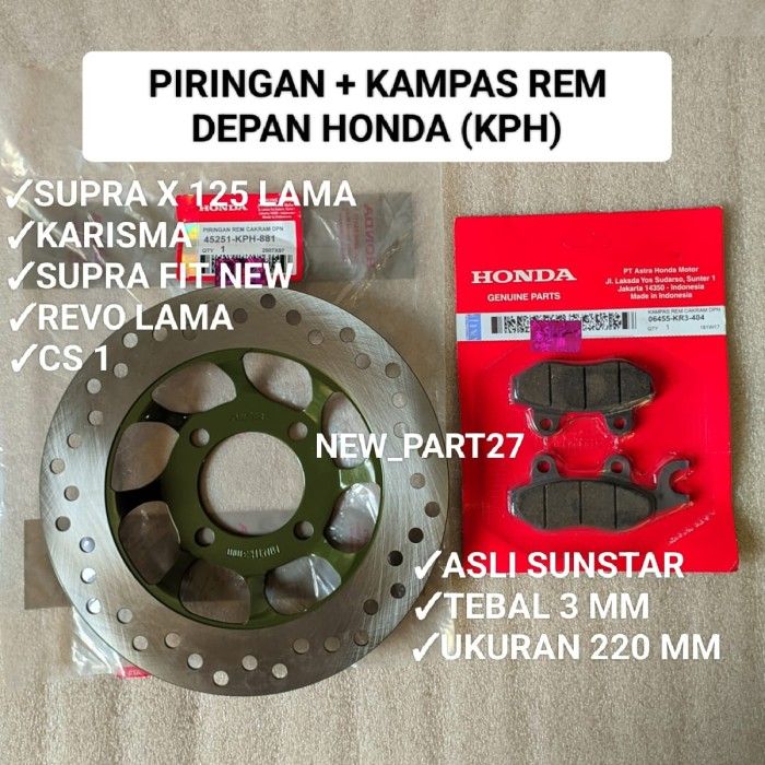 Piringan/cakram depan+kampas rem honda/supra x 125/revo lama/karisma