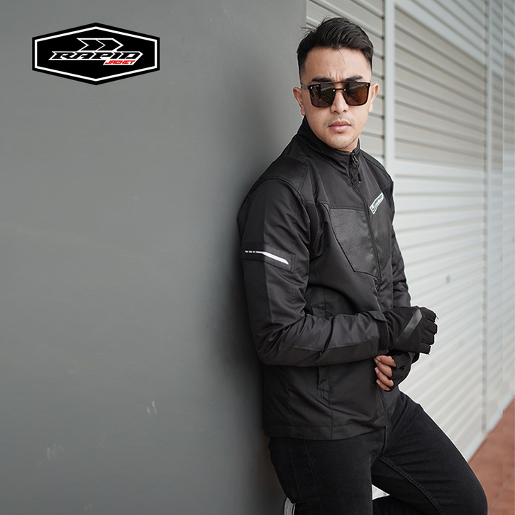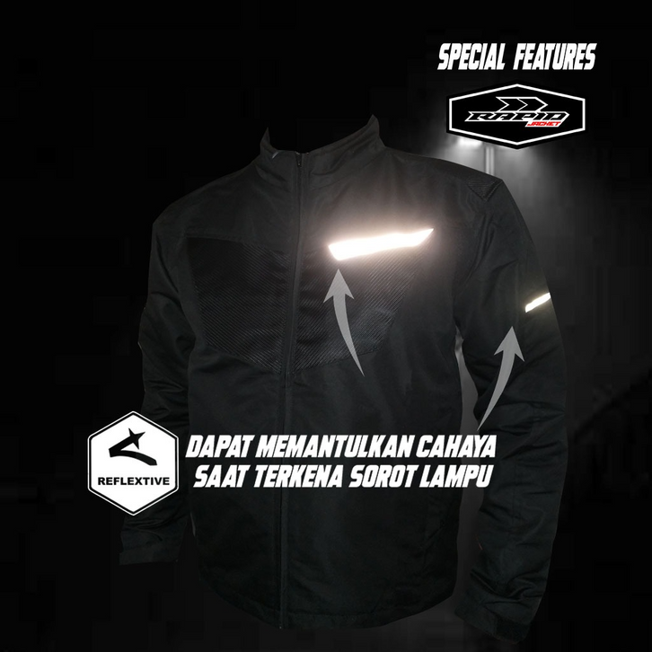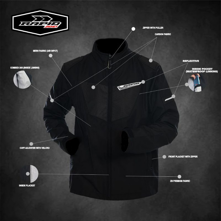 Jaket motor riding RAPID BLACKHAWK pria parasit premium jacket reflektif variasi motif carbon