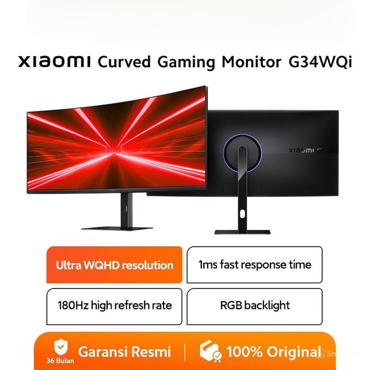 Monitor 34 Inch / Monitor Xiaomi Curved Gaming Monitor G34WQi / Ultra Wide QHD 180Hz 1ms Gaming Monitor 34 Inch Resmi