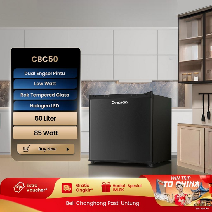 Kulkas 1 Pintu Mini Bar Changhong Refrigerator Lemari Es Kapasitas 50 Liter Cbc 50 Semi Auto Defrost Adjustable Door