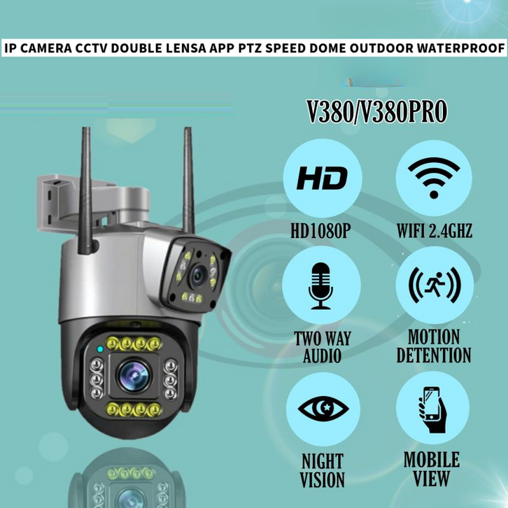 IP CAMERA CCTV DOUBLE LENSA APP V380 PRO PTZ SPEED DOME OUTDOOR WATERPROOF