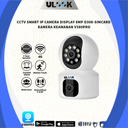 BUNDLE ULOOK SMART IP CAMERA DISPLAY 8MP D308-SIMCARD SMART NET CAMERA KAMERA KEAMANAN V380PRO