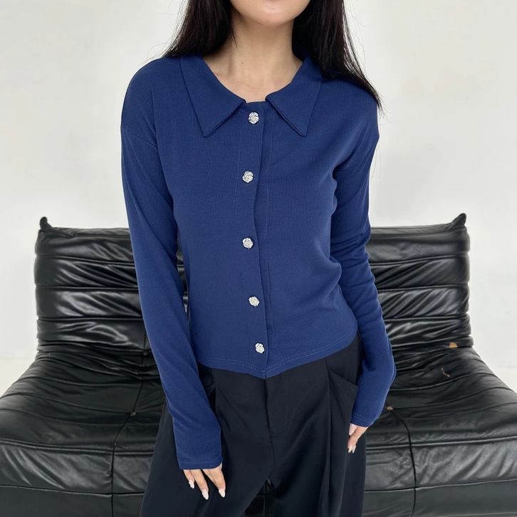 LIMO TOP - Atasan Knit Wanita Outer Lengan Panjang Sweater Cardigan Basic Korean Polo Top Baju Ribbed Knit Kancing Rib L