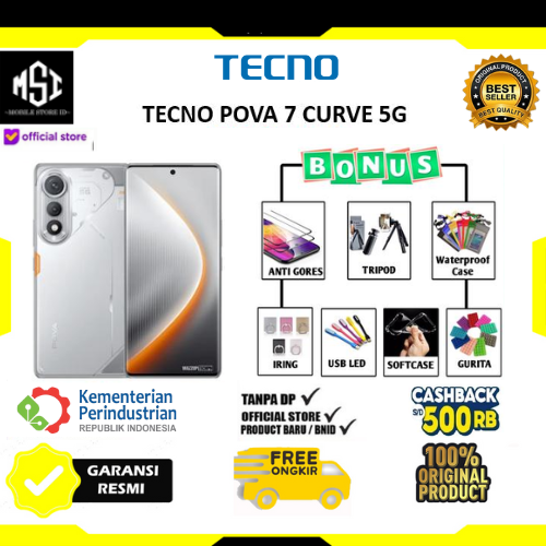 Official Store ✅ Tecno Pova Curve 5G 16/256GB Type AMOLED, 144Hz, 2304Hz PWM, 1300 nits (peak) Size 6.78 inches, 109.9