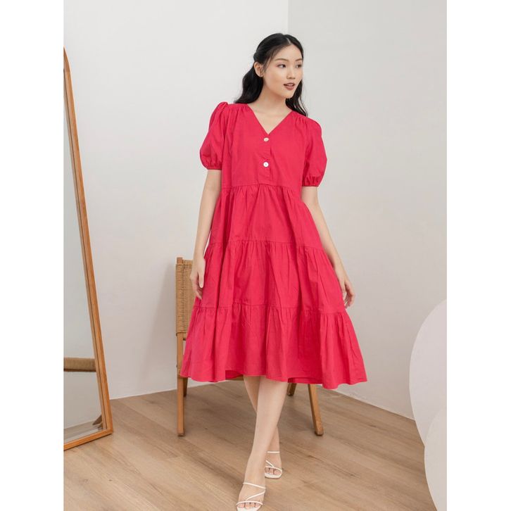 DRESS WANITA KATUN CASUAL KOREA KANCING ORIGINAL MODEREN PEREMPUAN KEKINIAN