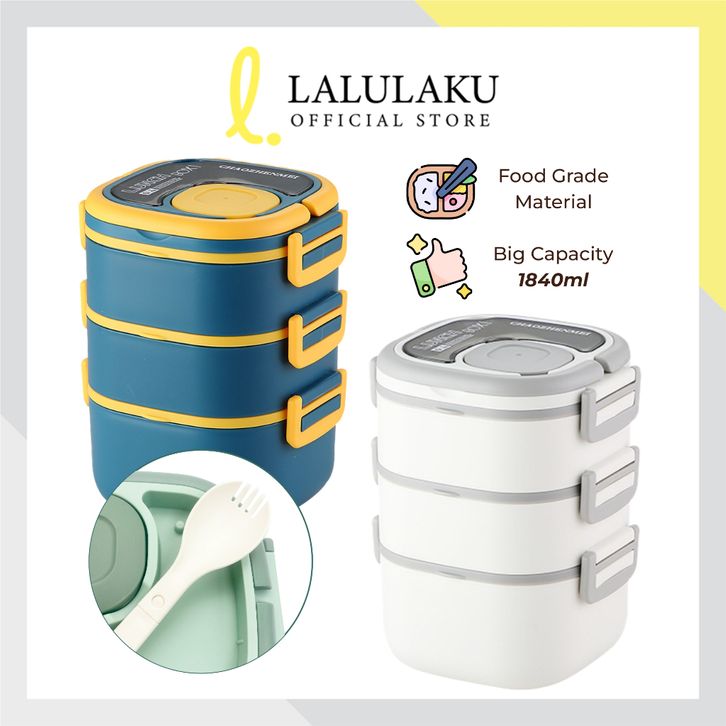 Tempat Makan Lunch Box Kotak Makan 3 Susun Tingkat Sendok Set Bento Rantang Susun Microwave BPA Free