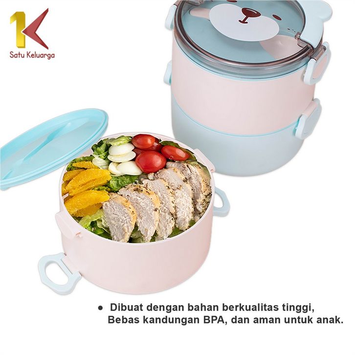 Satu Keluarga Tempat Makan Anak 3 Tingkat C447 Rantang Susun Karakter Anak Motif Lucu Lunch Box Set BPA FREE