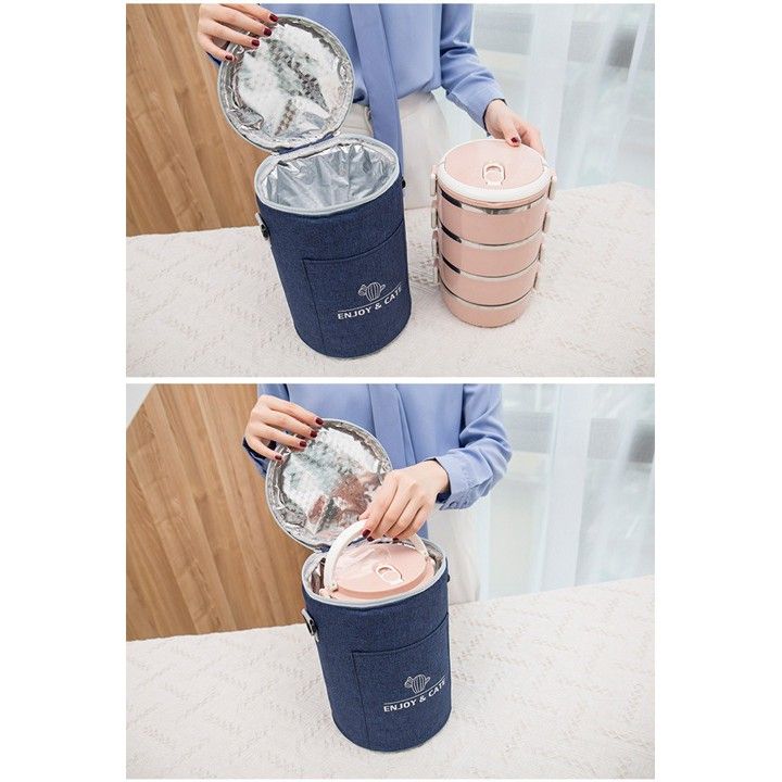 Travelmate Tas Bekal Lauch Bag Rantang 3 Susun Model Bulat Tas Kotak Bekal