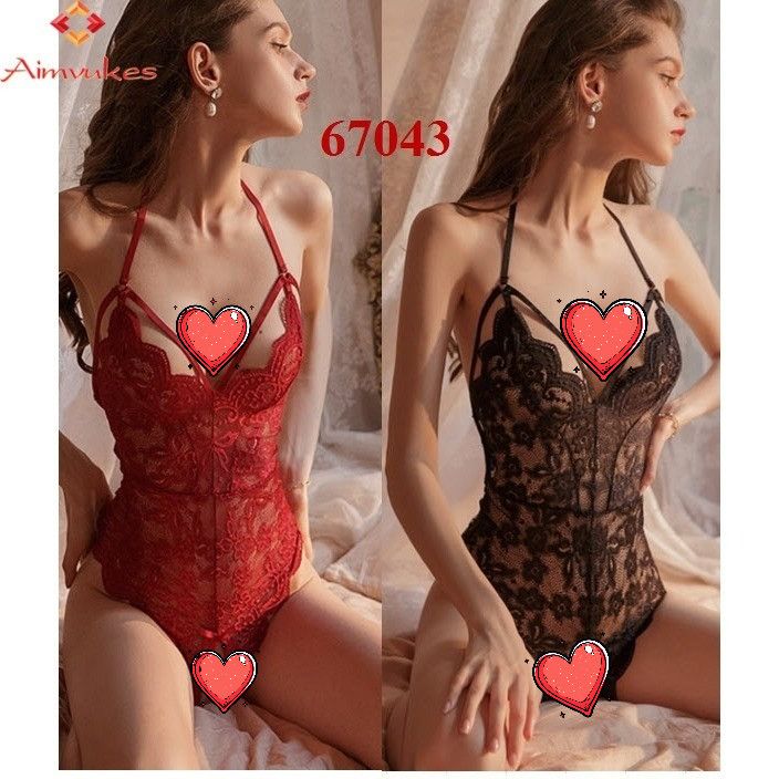 AIMVUKES--670 Lingerie Longnight Sexy Jumpsuit Open Crotch V-Neck Seksi Lingerie【Pengiriman rahasia】