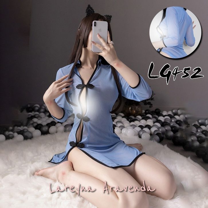 Lareyna Aravenda Set Lingerie + CD Fantasy Cheongsam Klasik Transparan Menggoda LG452