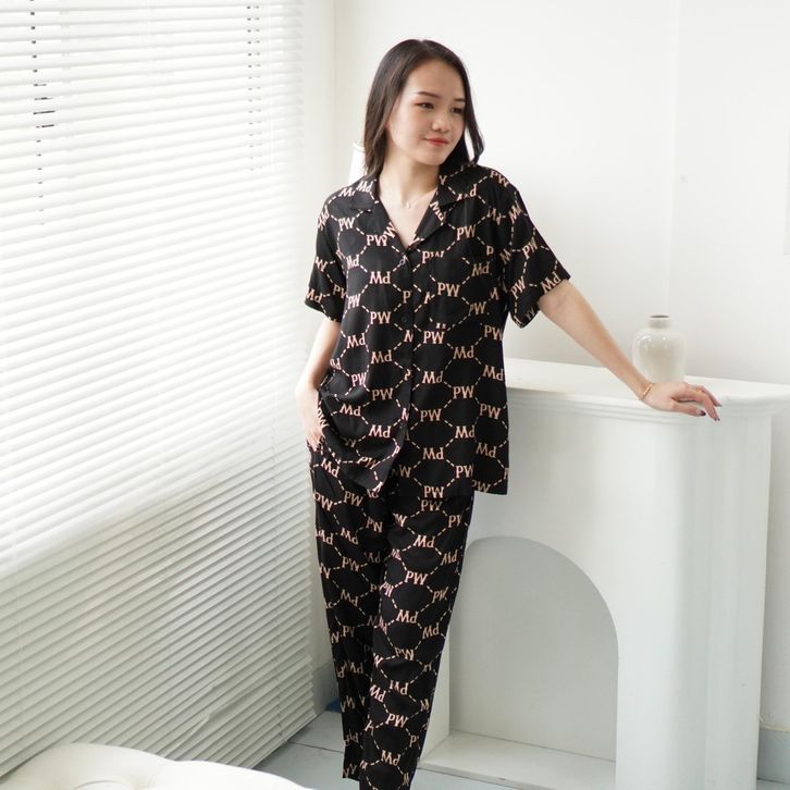 Piyama Rayon PW Wanita Motif Lengan Pendek dan Setelan Celana Panjang - Rayon Baju tidur Busui