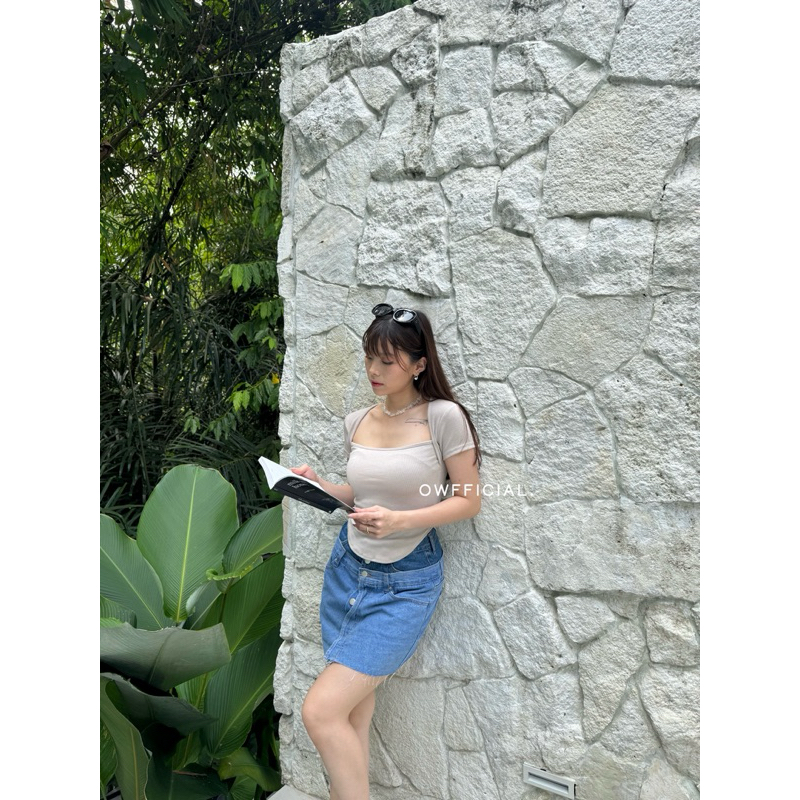 METH RIBBED T0P | Basic Crop Top Bahan Premium Knit Tebal Atasan Rajut Wanita Lengan Pendek Basic Knit Top Casual