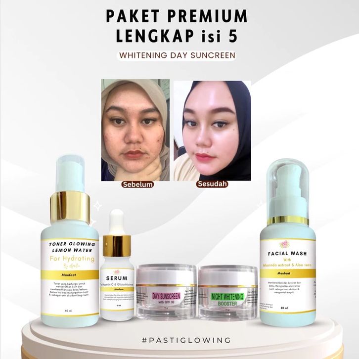 (FREE SERUM WAJAH) PAKET EXPRESS PREMIUM SUSAH PUTIH & JERAWAT (ISI 5 PEMUTIH GLOWING MERLINSKIN BPOM)