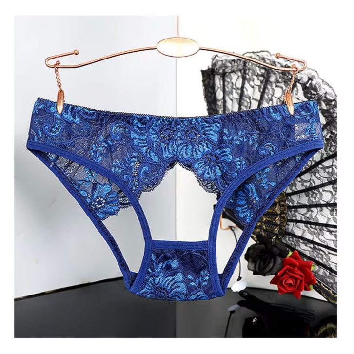 Dezenna Sexy G String Wanita Renda Floral Celana dalam Open Crotch thong Low Waist 5C219