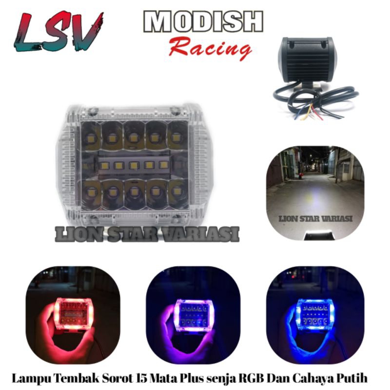 Lampu Tembak Sorot LED 15 Mata Laser Gun Plus Senja Biru dan Merah Foglamp Waterproof