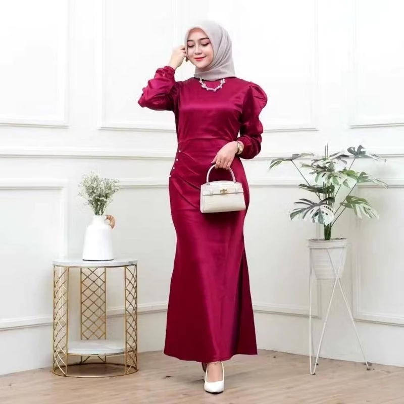 Dress Kondangan Modern Elora Satik Silk Series Premium Gamis Kondangan Lebaran Pesta Bridesmaid Terbaru Terlaris Murah