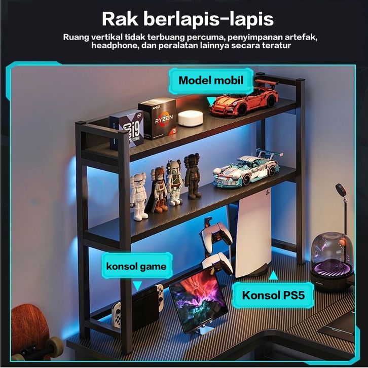 Damaindah Meja Komputer Shaped L SeDamairat Karbon / Meja Komputer Minimalis / Meja Gaming / Meja Kantor / Meja Laptop /