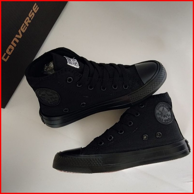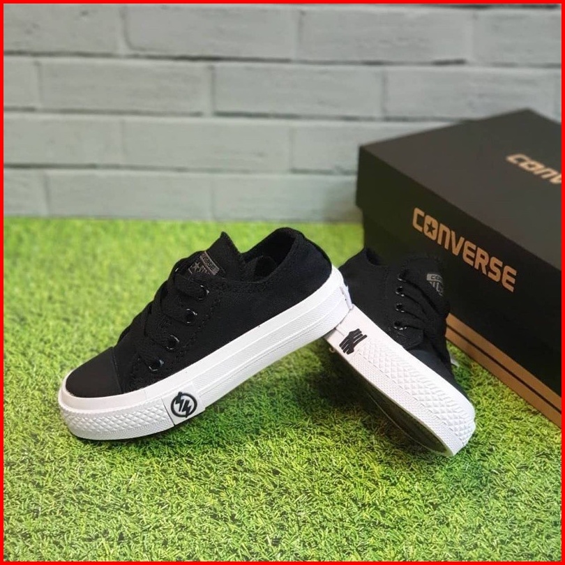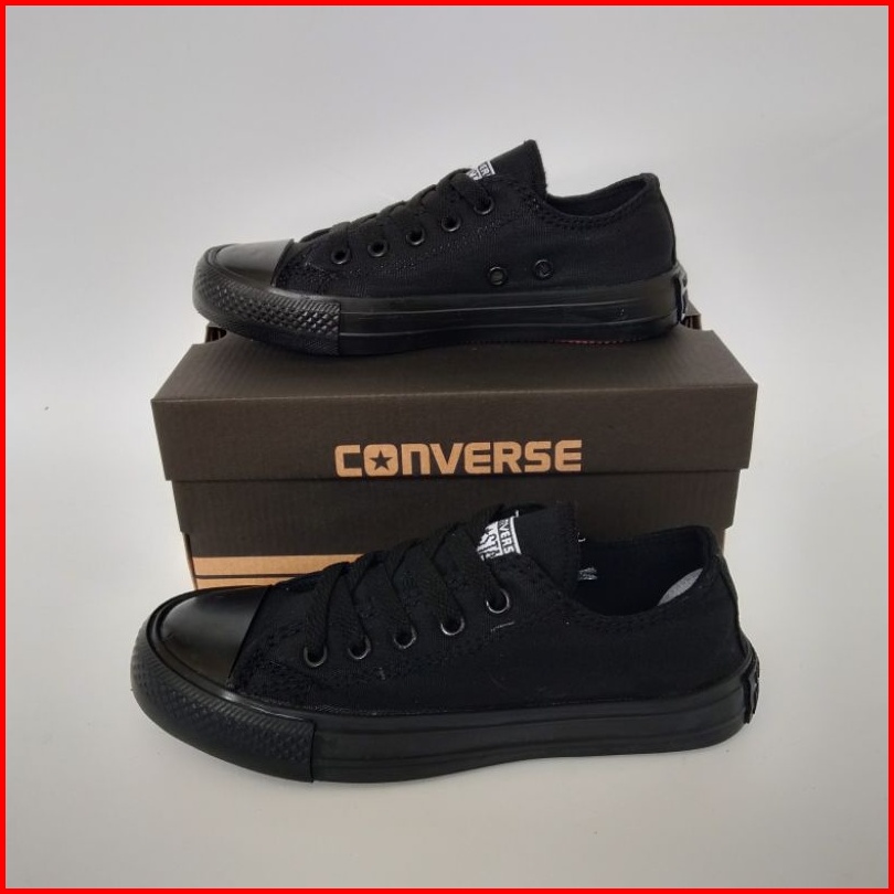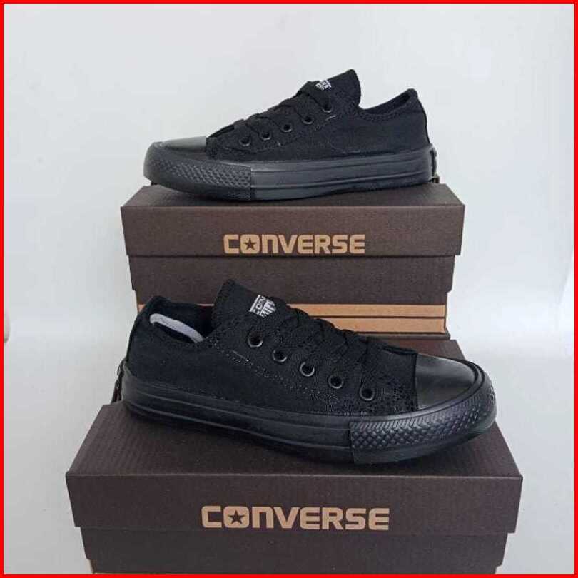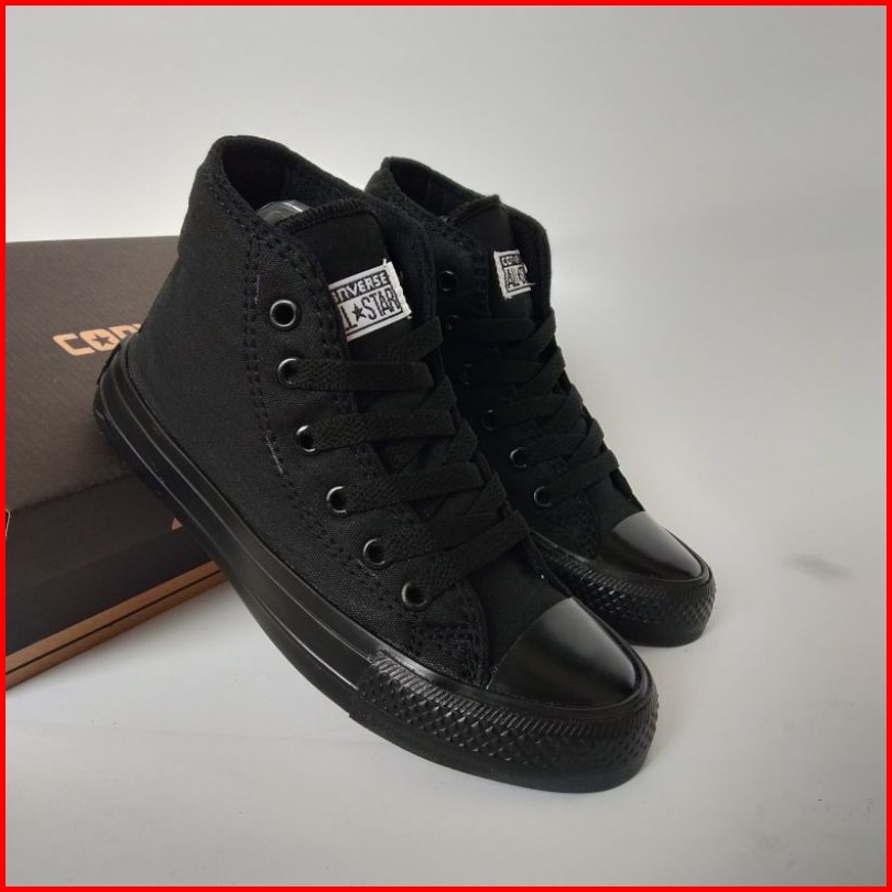 Sepatu Classic Full Black Sneakers Hitam Polos Allstar Anak Laki-laki Perempuan Size 31-43
