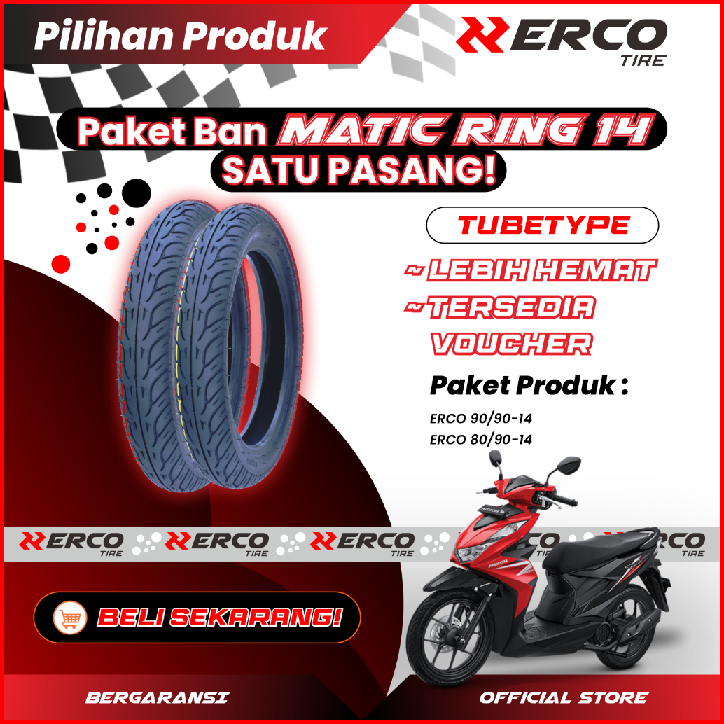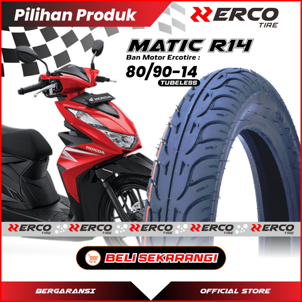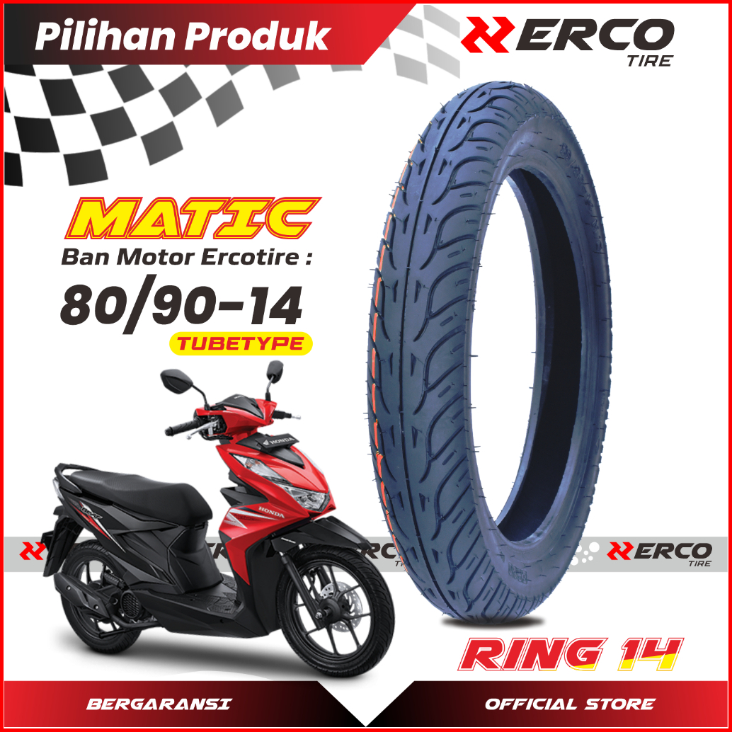 Erco Tire Ban Luar Motor Matic Depan Belakang Tubeless Nontubeless Ukuran 90 90-14 Dan 80 90-14
