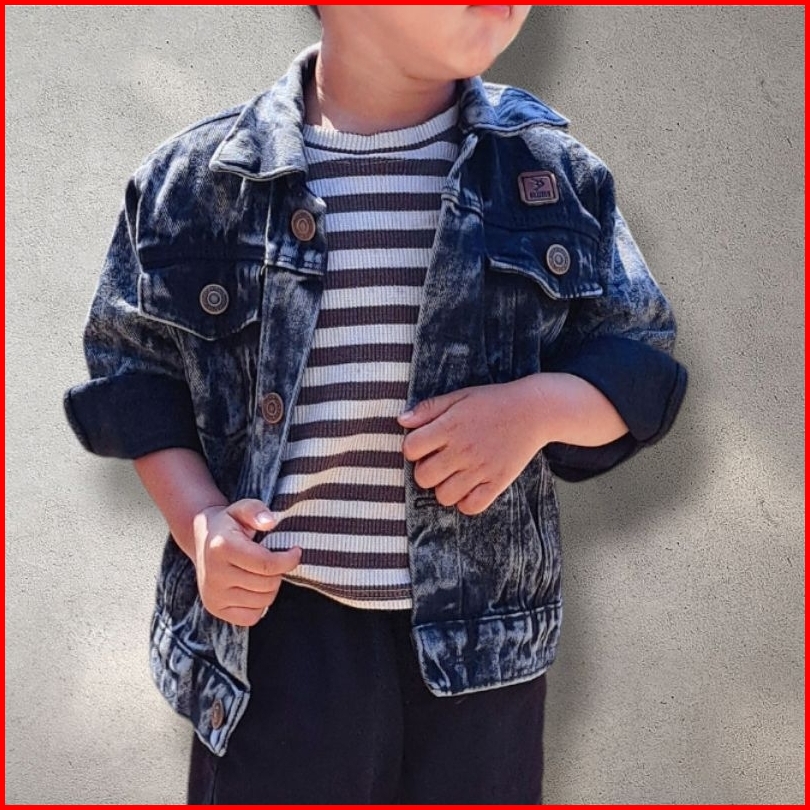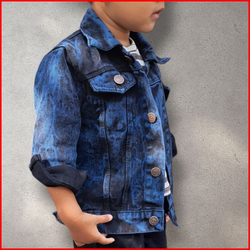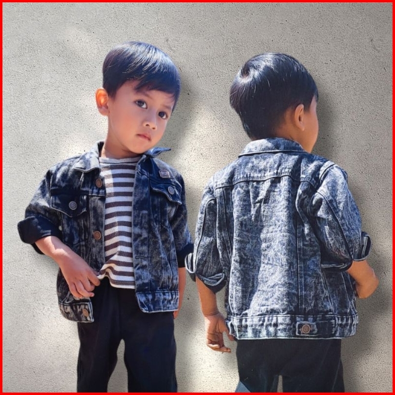 Jaket Anak Laki-laki Black Wash Jaket Jeans 1thn-12thn Jaket Denim Sandwash Bsju Anak Laki-laki