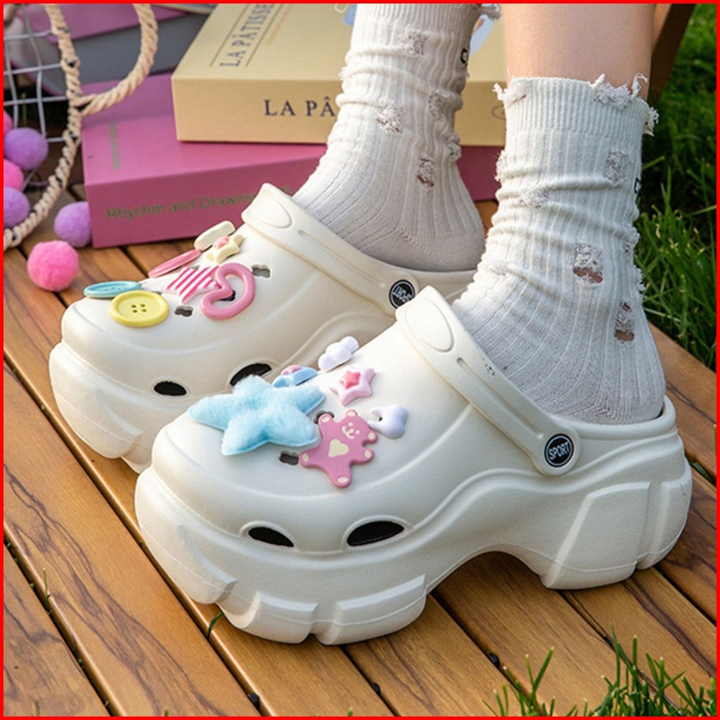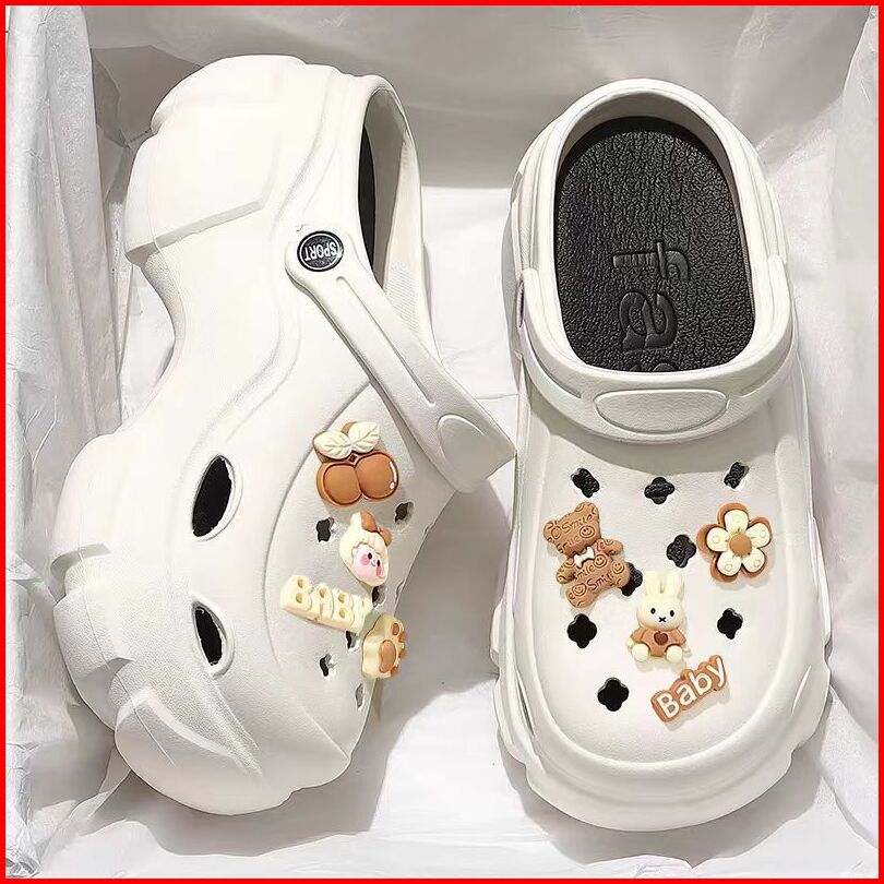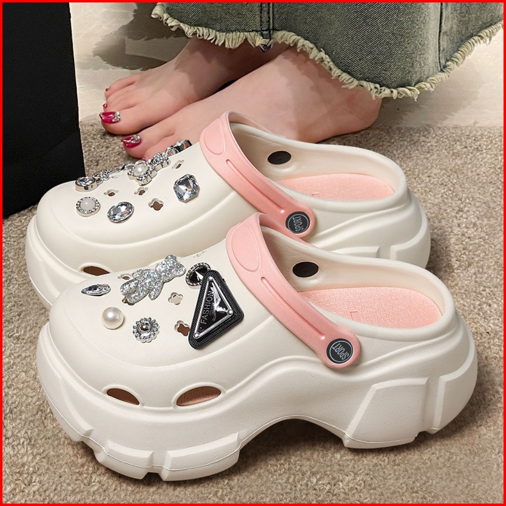 Sandal Lubang 5 5 Cm Dengan Sol Tebal Untuk Wanita Musim Panas 2025 Baru Anti-selip Tinggi Dengan Kepala Eva Sandal Anak