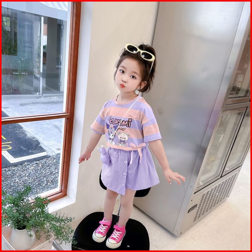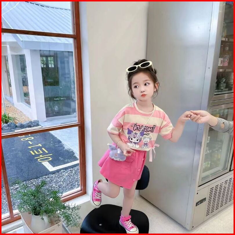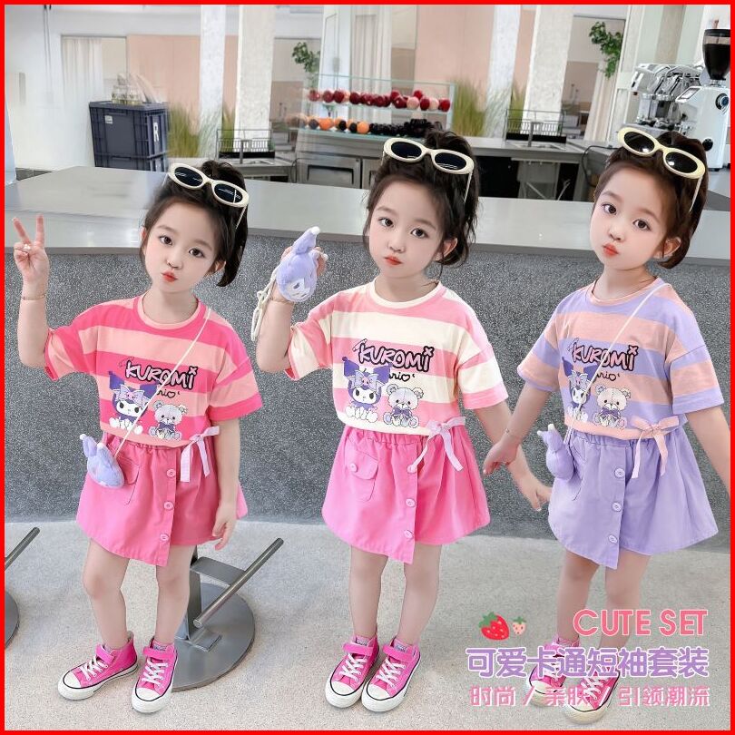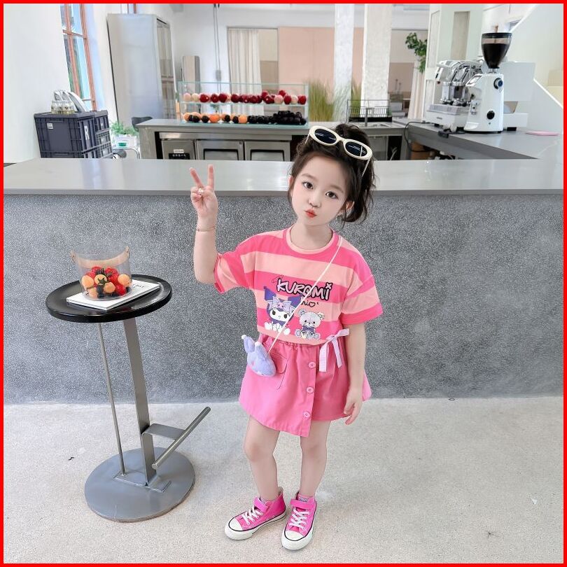 Baru Baju Setelan Kuromi Setelan Baju Anak Perempuan Import Motif Kuromi Bahan Katun Bonus Free Tas Baju Anak Kuromi Set