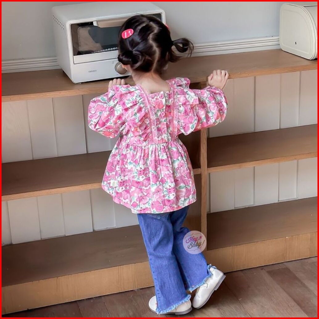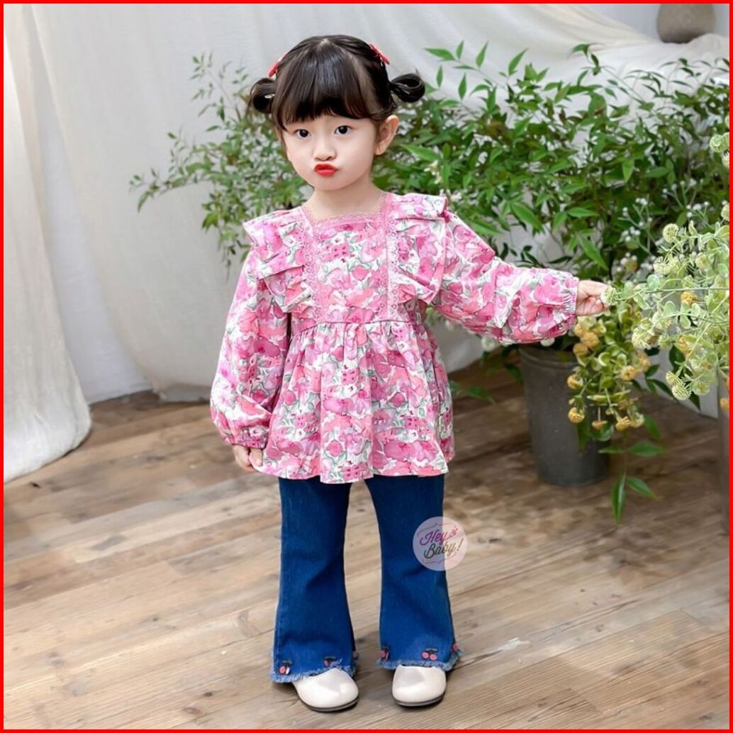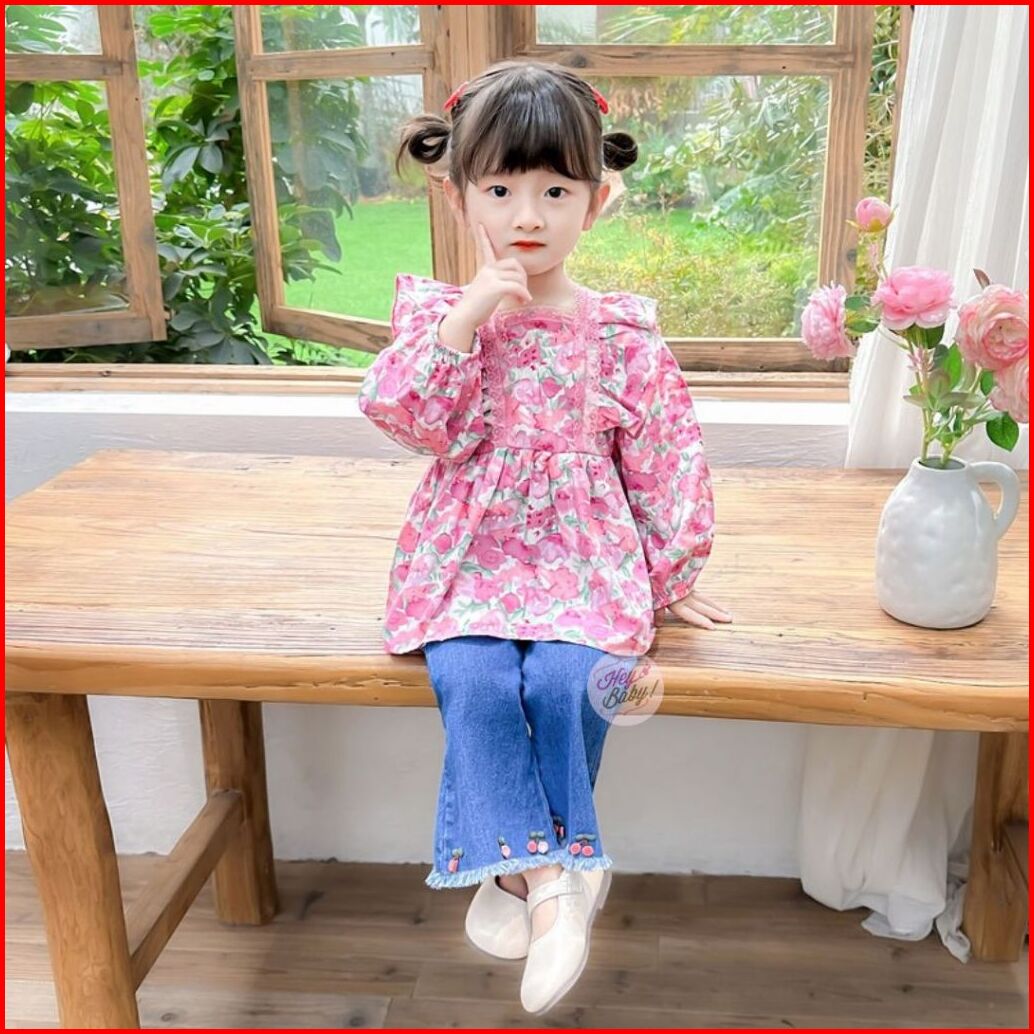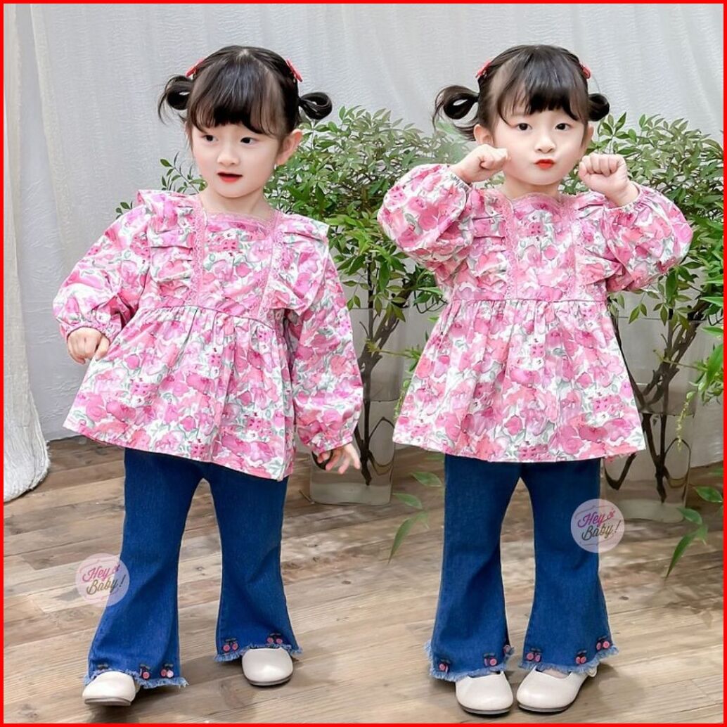 Promo 10.10 Heybaby Set Cherry Denim Ebv Baju Setelan Anak Perempuan Celana Denim 1-6 Tahun Motif Bunga