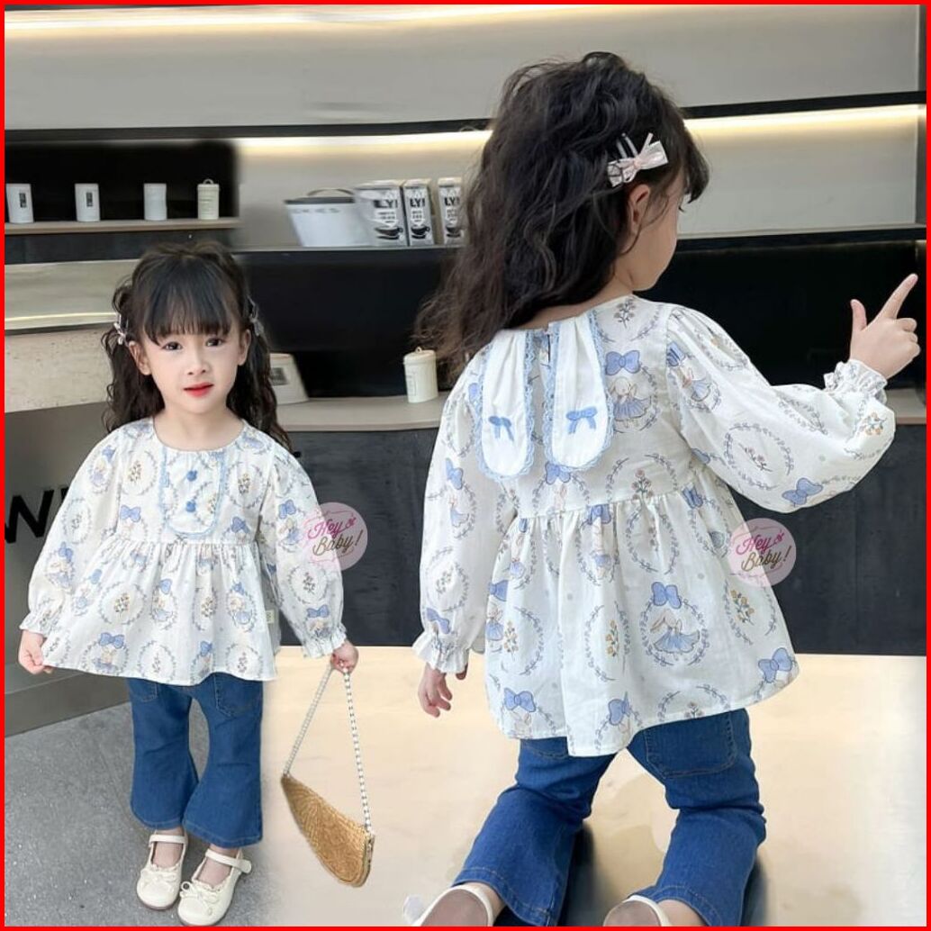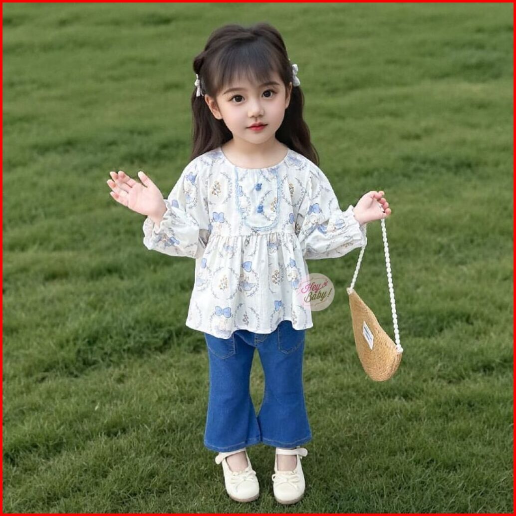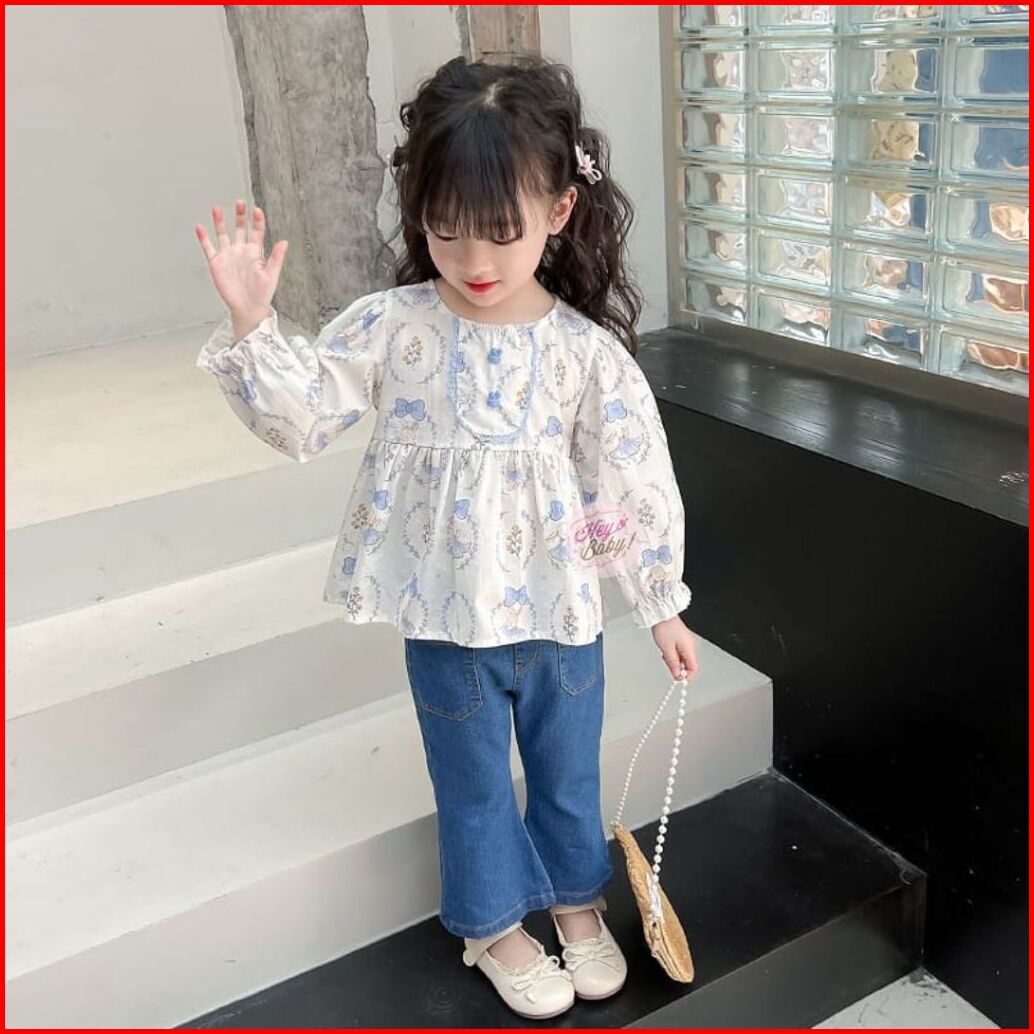 Promo 10.10 Heybaby Set Ear Blinking Ebv Baju Setelan Anak Perempuan Celana Denim Berkualitas 1-6 Tahun