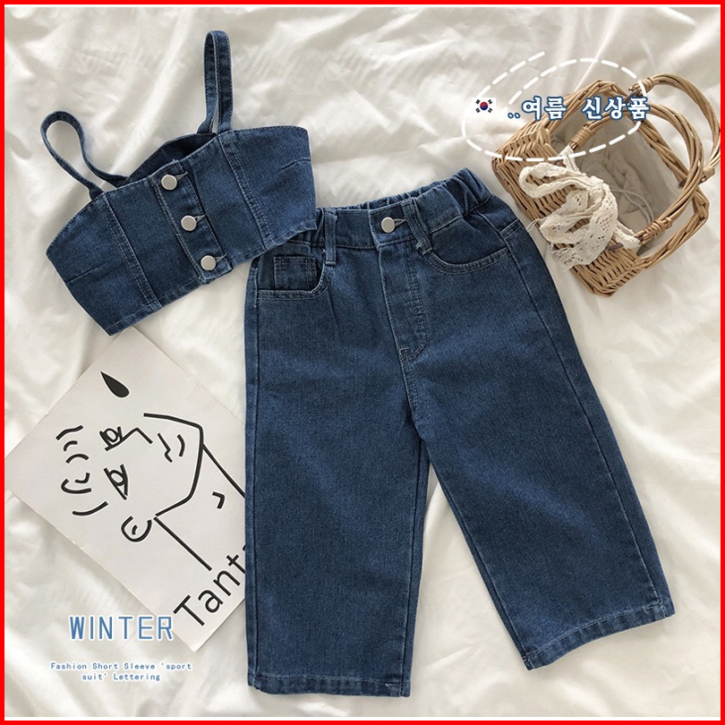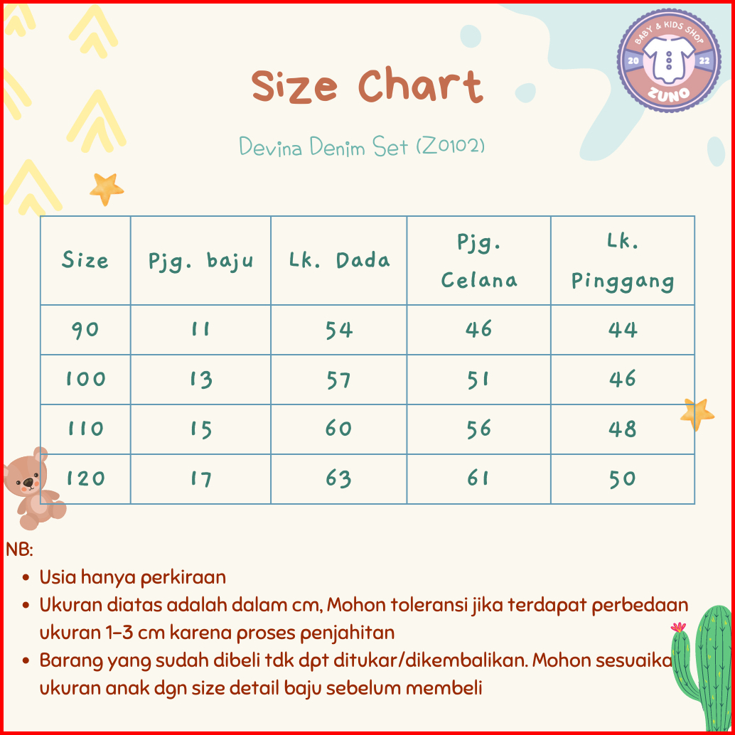 Z0102 1-7thn Zuno Kids Devina Denim Set Baju Setelan Anak Toddler Cewek Denim Cantik Lucu Korean Style