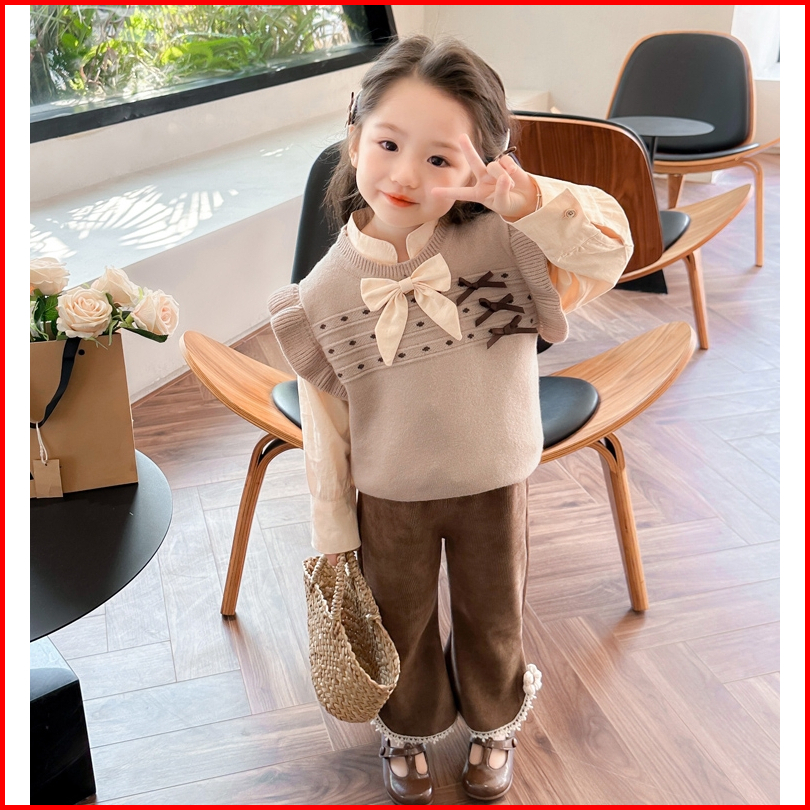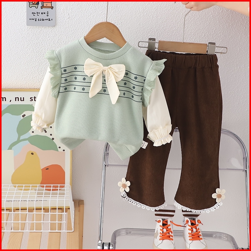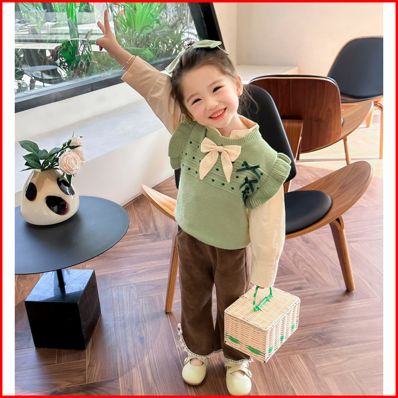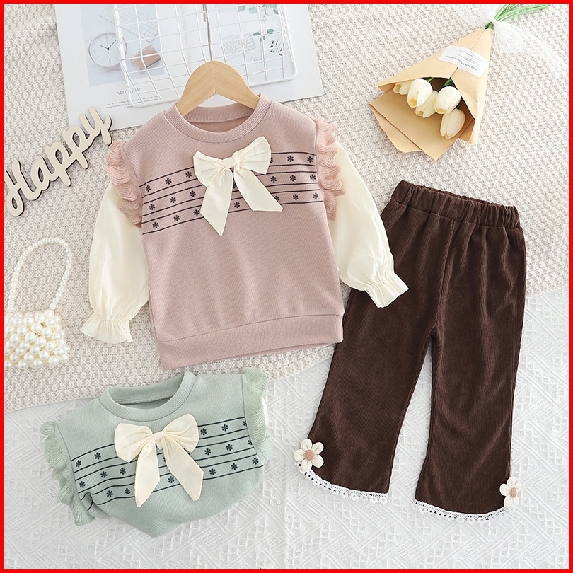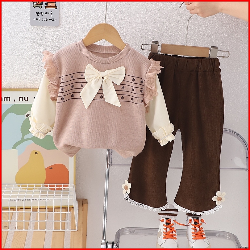 Twinkle Setelan Baju Anak Perempuan Lengan Panjang Bahan Rajut Motif Pita Korean Style Usia 1-4 Thn