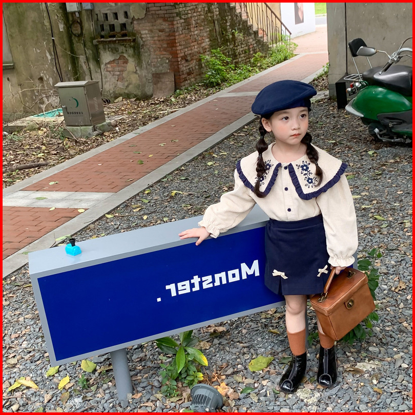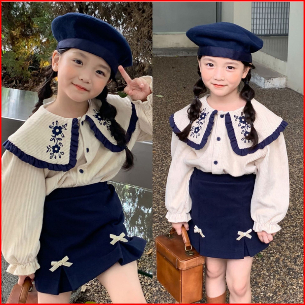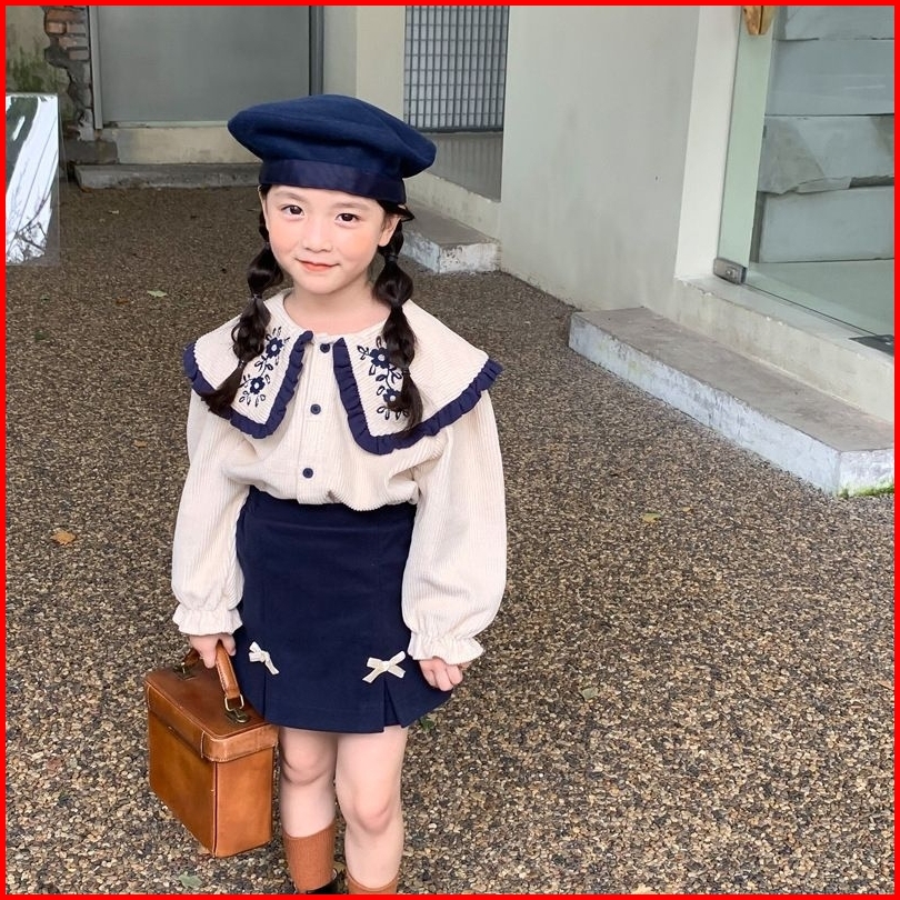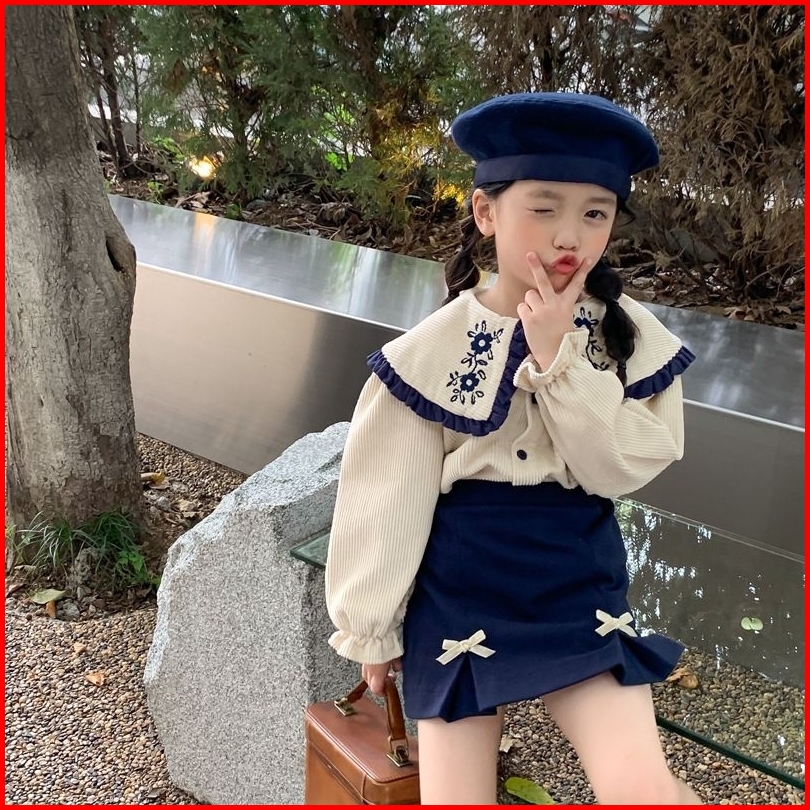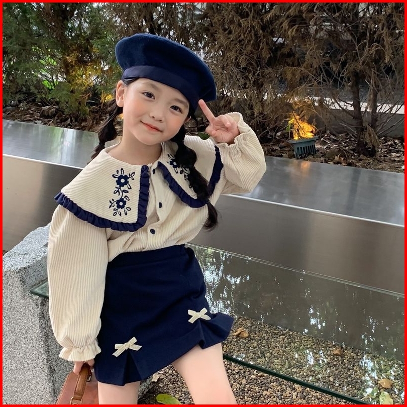 Cacoa 1-9 Tahun Setelan Baju Anak Perempuan Korean Style Blouse Rok Pendek Setelan Baju Anak Cewek Kekinian Set Setelan